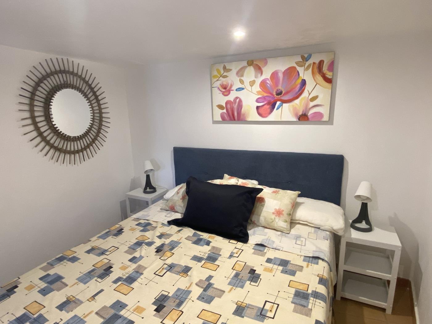 El apartamento es de una sola planta. Está situado en un callejón peatonal lleno de plantas y flores, No obstante, para acceder, hay unas escaleras en la calle. No tantas como para impedir el acceso a un cochecito de niño pero suficientes como para constituir una barrera arquitectónica para personas con movilidad reducida.