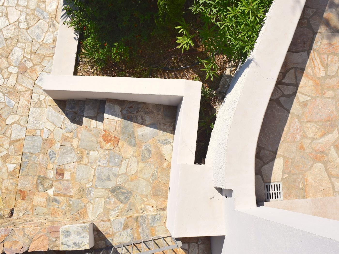 Los espacios exteriores son uno de los puntos fuertes de esta villa en Tamariu con piscina privada. El jardín en terrazas se despliega en varios niveles, cada uno ofreciendo un espacio único para relajarse y disfrutar del clima mediterráneo. La zona de piscina ofrece amplio espacio para tumbonas, ideal para tomar el sol, nadar y relajarse en el entorno natural de la Costa Brava.